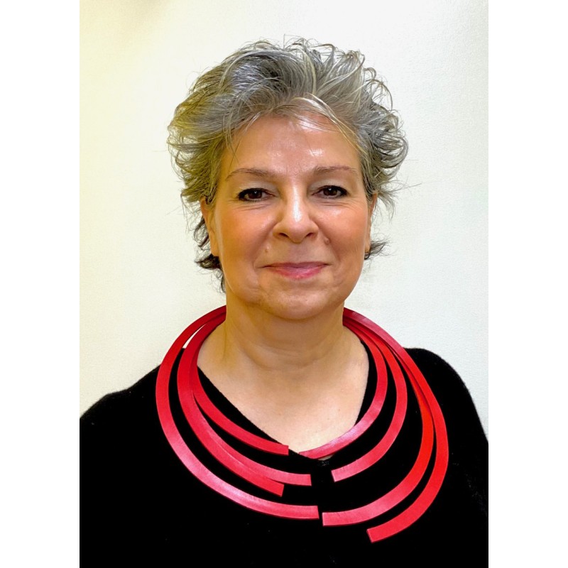 What a unique necklace!! Opulent and soft leather, cut by hand and double-sided. No clasp; you wear it from the back.