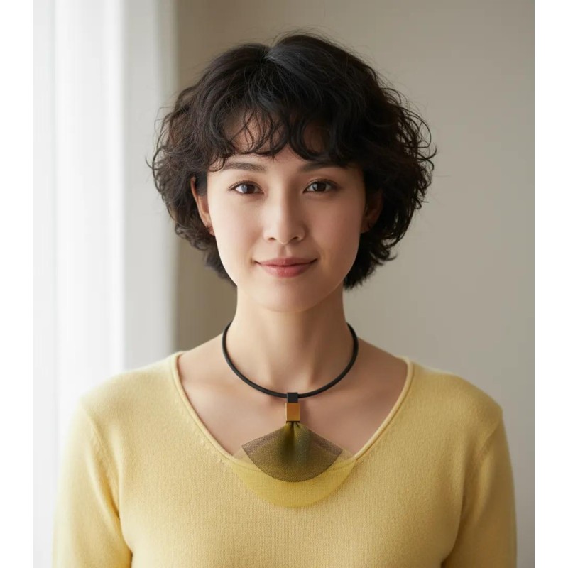 A cool new concept with a mesh sculpture on soft cord with magnetic closure.