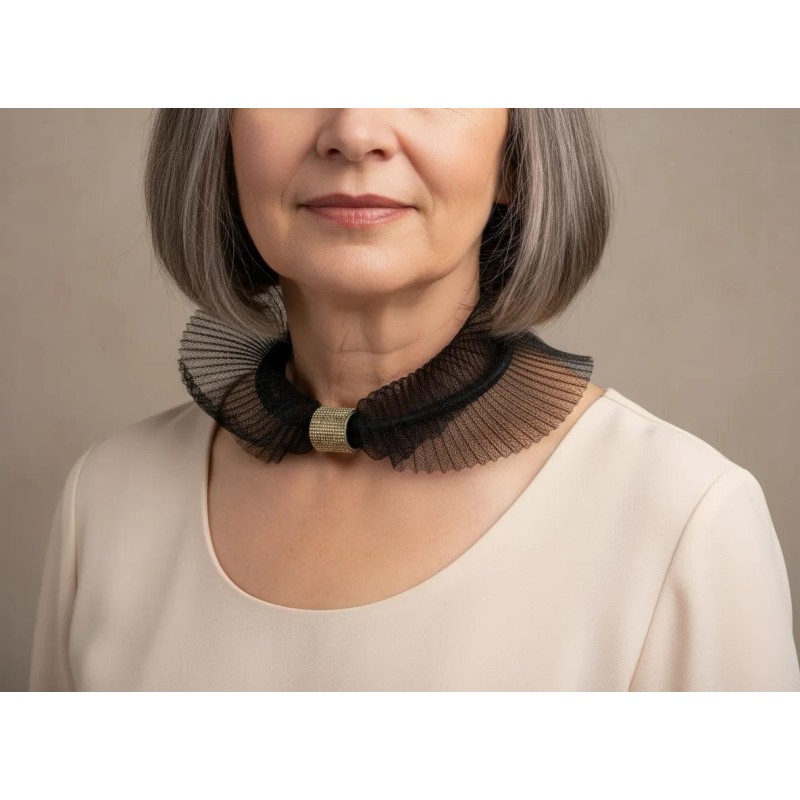 a stunning new design with a lacey collar sustained by a rubber tour and accented with a strass ring.