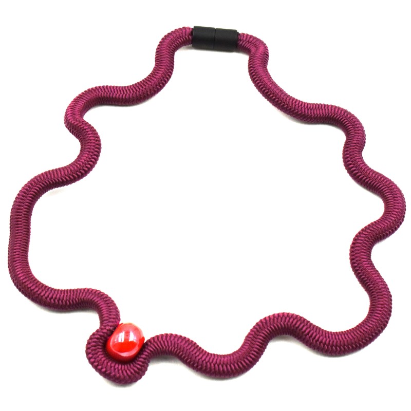 A simple and versatile concept that will keep its shape, 20" long with magnetic closure and ceramic ball accent.