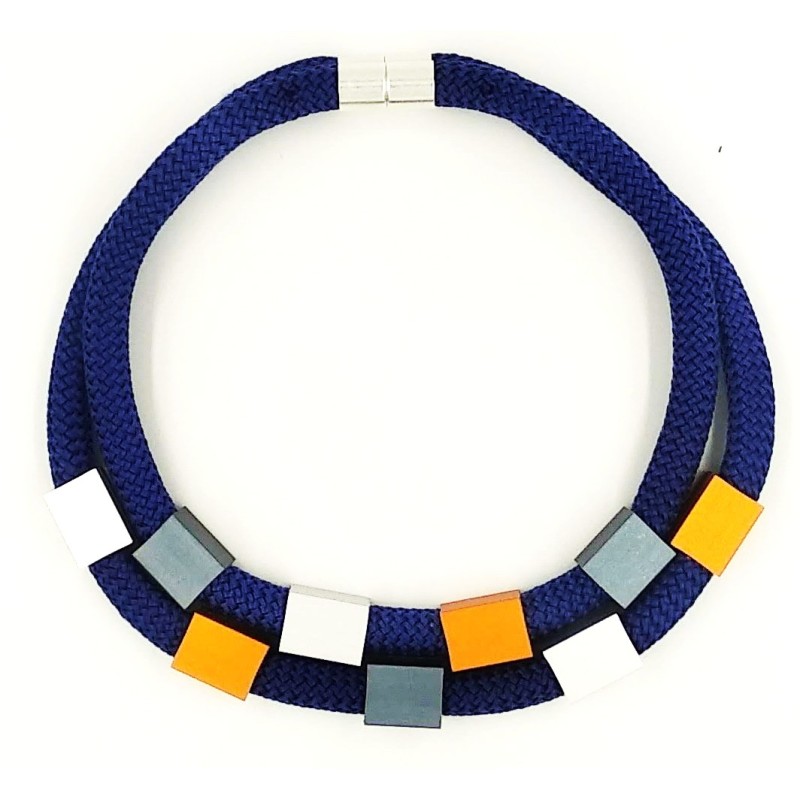 Necklace - Double strand thick cotton cord w/ staggered aluminum cubes, magnet closure