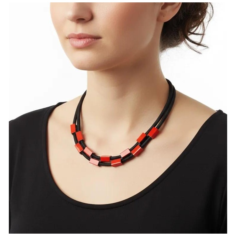 Necklace - two strands with 1 magnetic closure on a thin cotton cord w/ staggered aluminum cubes.