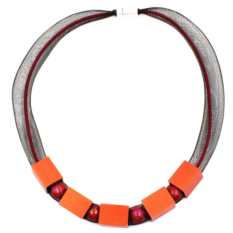 Iconic Christina Brampti mesh and glass pearls, magnetic closure.