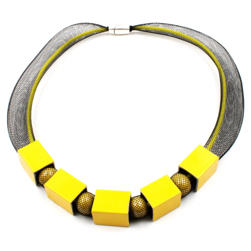 Iconic Christina Brampti mesh and glass pearls, magnetic closure.