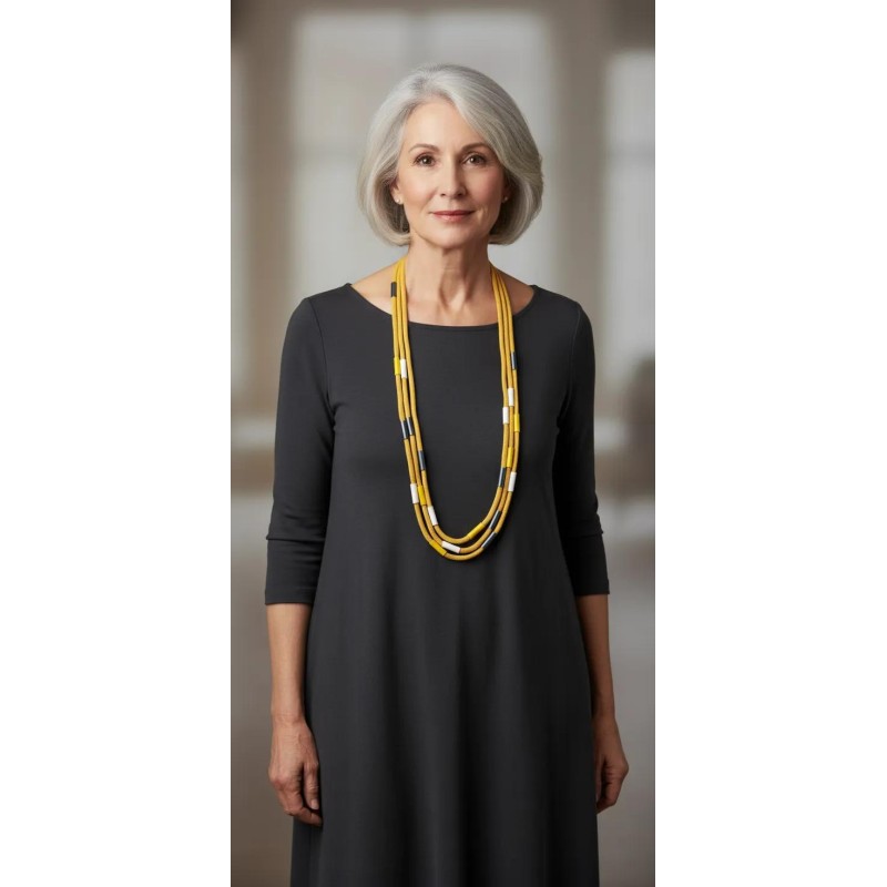 Rich, triple strands 32" long, with very soft cotton cords and aluminum cylinders.