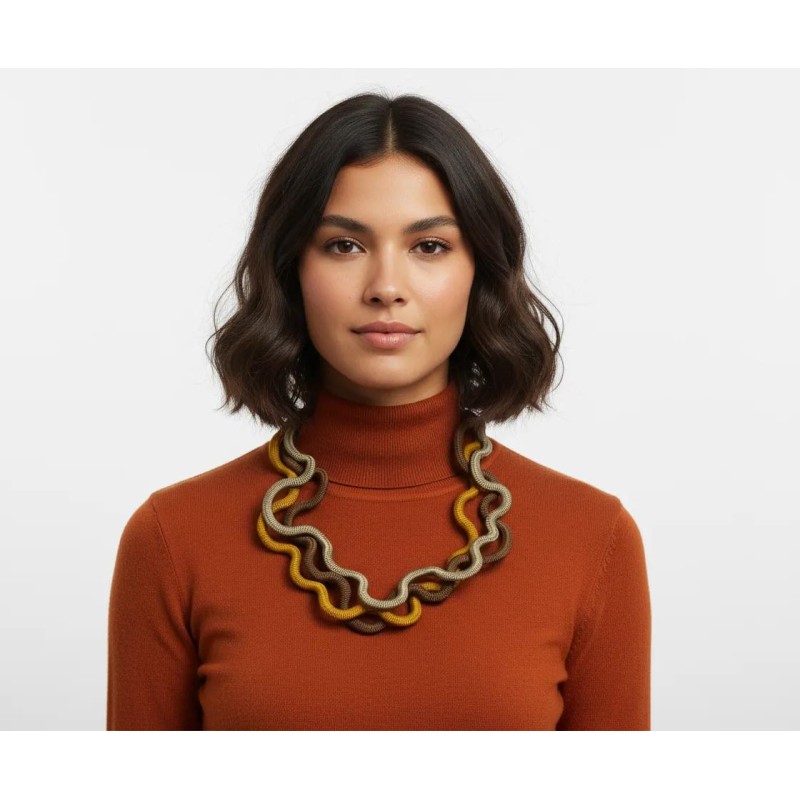 A great new design with 3 thin, soft ropes shaped with a wavy form that will keep its waves. A comfortable 20" long, with magnetic closure.