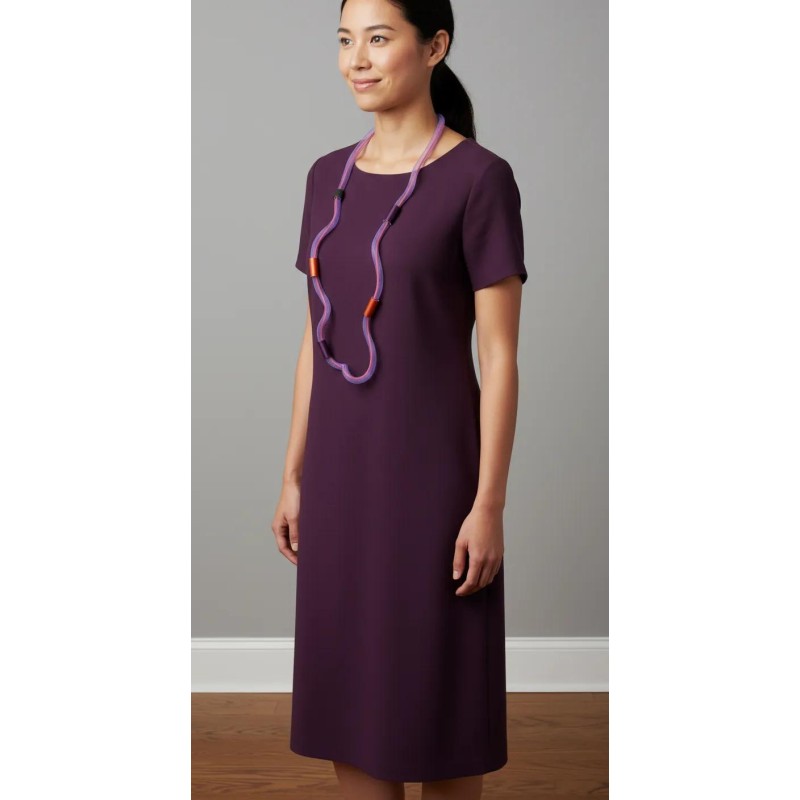 A truckload of small details are found in this creation: a thin mesh rope shaped with a wavy form that will keep its waves, filled with a colored cord and spiced up with anodized aluminum cylinders + one sparkly accent... because we can. A light and comfortable 24" long