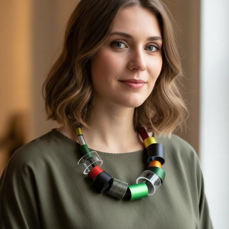 A truly fabulous design with an array of fun parts - acrylic, anodized aluminum, and strass.