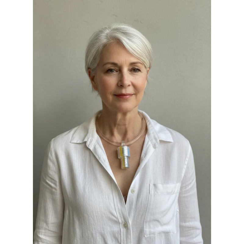 A dramatic, well constructed pendant with 2 parts nestled in each other, and a beautiful silver foil inlay.