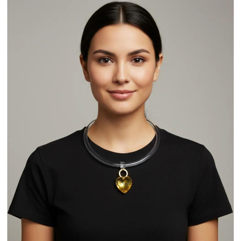 Chic and understated, a Lucite heart with gold foil inclusion on a clear Lucite tour.