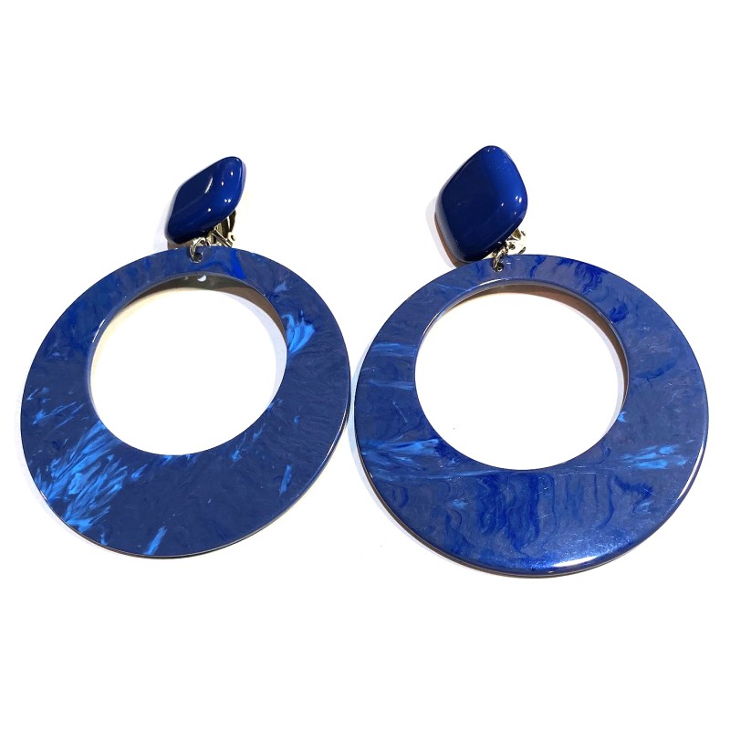 Large clip earrings made with an exclusive Italian acrylic material in a gorgeous shade of blue with special effects